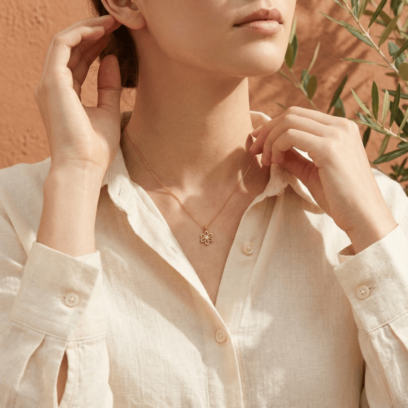 The open-petal floral form represents growth without rush — a reminder that elegance doesn’t need excess. Designed to be worn every day, this pendant reflects femininity in its most effortless form.