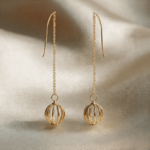 The Celest Cage Gold Plated Drop Earring features a long chain silhouette finished with a sculptural open-cage sphere. Designed for fluid movement and visual lightness, the piece offers a modern statement without heaviness.
