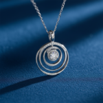 Inspired by : Inspired by the quiet harmony of the cosmos, the Celestia Orbit Pendant mirrors the graceful paths that stars follow across the sky. The central stone glows like a guiding light, surrounded by shimmering rings that represent the phases and circles of life. It’s a reminder that even in a vast universe, there’s always one bright point that keeps you centered. A timeless piece for someone who carries their own calm, steady brilliance.