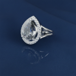 Crystal Dewdrop Ring – Inspired by the elegance of a morning dewdrop, the Crystal Dewdrop Ring features a dazzling teardrop zircon embraced by a halo of shimmering stones. Crafted in Sterling 925 silver, its refined split band design radiates timeless charm and sophistication.