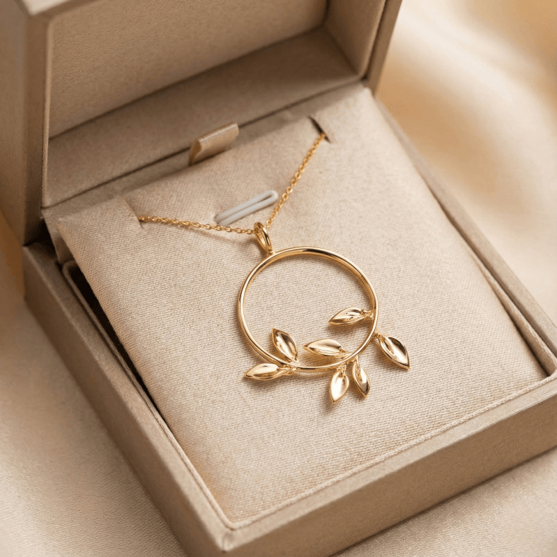 The quiet rhythm of nature, the Eterna Leaf Circle pendant symbolizes continuity, growth, and balance.