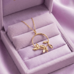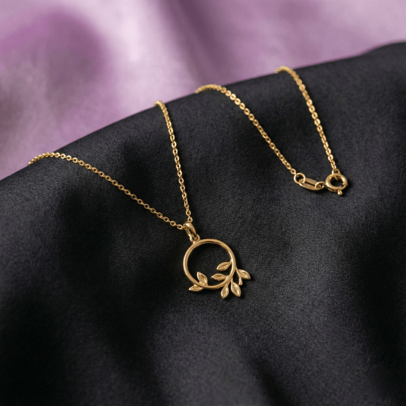 The Eterna Leaf Circle Gold Plated Silver Pendant Necklace is a minimal yet meaningful piece designed for everyday elegance.