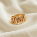 Clean lines and repeated form, the Linear Rhythm Ring reflects balance through structure. Each polished bar is placed with intention, creating a steady visual rhythm that feels modern, confident, and composed. The design celebrates precision without excess.
