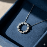 Inspired by : It was a year’s worth of whispered ‘I love yous,’ forged into a perfect circle.The small, diamond hearts were not single gifts, but twelve monthly reminders of unbroken commitment.When she fastened the silver clasp, she felt the weight of every shared memory settle gently over her heart, a bright, endless orbit of affection.