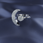 Lunar Embrace Ring – The Lunar Embrace Ring enchants with its unique open design, featuring a brilliant round zircon stone opposite a crescent moon encrusted with sparkling zircons. Crafted from 925 sterling silver, this celestial-inspired piece radiates elegance and mystery—perfect for dreamers and lovers of the night sky.