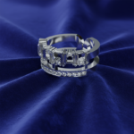 Crafted in sterling 925 silver, the Regal Rhythm Ring features a captivating mix of baguette and round-cut zircon stones. With its tiered design and brilliant sparkle, this ring evokes elegance and movement, making it a bold and luxurious choice for special occasions or standout daily wear.
