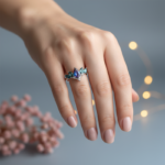 Inspired by :This ring carries the silhouette of a tiny crown, shaped by marquise gems that look like frozen petals catching the first light of dawn. At the center sits a color-shifting stone, glowing between deep blue and violet—like the sky just before sunrise. It’s made for someone who moves quietly but radiates presence, someone who doesn’t need a title to feel like royalty.