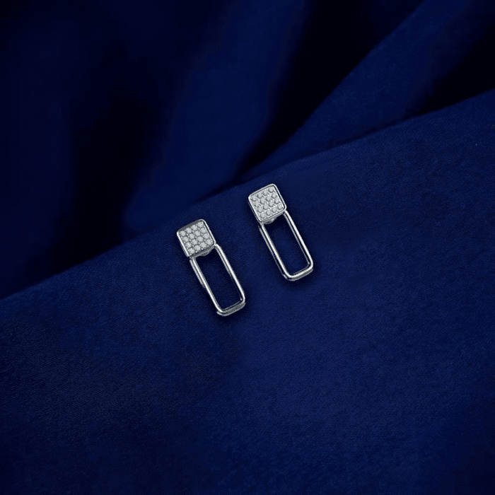 Silent Promise Earrings gleam with pavé-kissed squares above sleek open links, catching light like guiding stars. Their modern silhouette elevates every moment, wrapping the wearer in quiet confidence, refined sparkle, and a sense of direction that turns everyday strides into statements.
