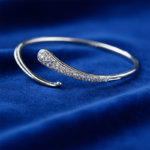 Inspired by :The design flows like a quiet ripple clean, minimal, and effortlessly graceful. The pavé detailing at the tip brings a soft shimmer, as if the light is following its movement. This cuff is for someone who prefers refined details over loud statements, someone whose style speaks in curves, clarity, and calm confidence.
