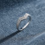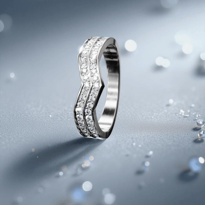 Inspired by : Moonlit ripples and the protective chevron motif, twin pavé lines trace a sleek crest that guides light forward.