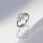 Inspired by :Crystalline snowflakes and city lights on a clear December night, baguette and round stones radiate in perfect symmetry from a luminous heart. The sleek silver band frames the starburst for modern elegance, celebrating uniqueness because no two snowflakes, or stories, ever shine the same way.