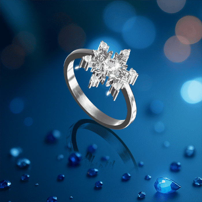 A radiant snow‑kissed burst gathers around a calm center, catching light like the first quiet morning of winter and promising fresh beginnings with every glance. Slip it on to remember that gentleness can be brilliant small moments, steady love, and clear breaths that shine through every season. Each sparkle feels like a kept promise, a reminder that purity and strength often arrive together, softly and unmistakably yours.