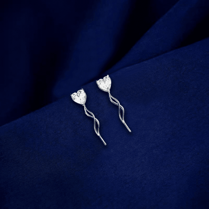 Twist of Love Earrings showcase brilliant heart-shaped gems crowned by elegant twisted silver tails that dance with movement. Their romantic silhouette captures light beautifully, creating an aura of grace and affection. Perfect for expressing love, celebration, and the joy found in life’s most precious moments.