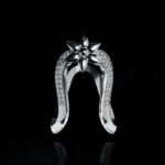 The Vanki Blossom Ring features a graceful V-shaped design inspired by traditional South Indian vanki motifs. Crafted in sterling 925 silver and adorned with shimmering zircon stones, it showcases a central floral accent—blending cultural elegance with modern charm for a striking, timeless accessory.