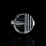 A bold expression of symmetry and sparkle, this 925 sterling silver ring features a geometric circle divided by sleek lines and a dazzling row of zircon stones. Modern, artistic, and made to stand out effortlessly.