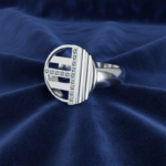 A bold expression of symmetry and sparkle, this 925 sterling silver ring features a geometric circle divided by sleek lines and a dazzling row of zircon stones. Modern, artistic, and made to stand out effortlessly.